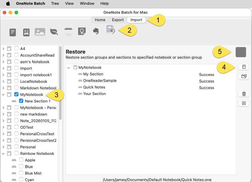 - On the right side is the ability to add single or multiple .one files or folder. These features give you a preview of the structure of your MyNotebook notebook. so that you can clearly see the imported structure tree.