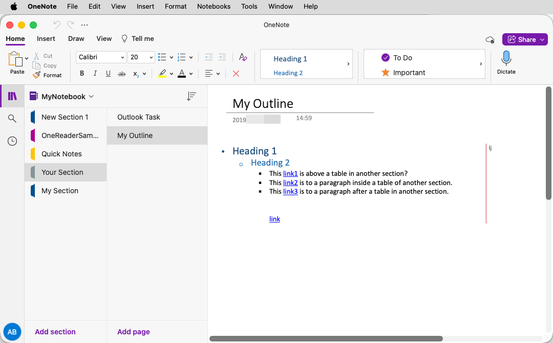 Open the MyNotebook notebook with OneNote, and then you can see the new sections or section groups imported.