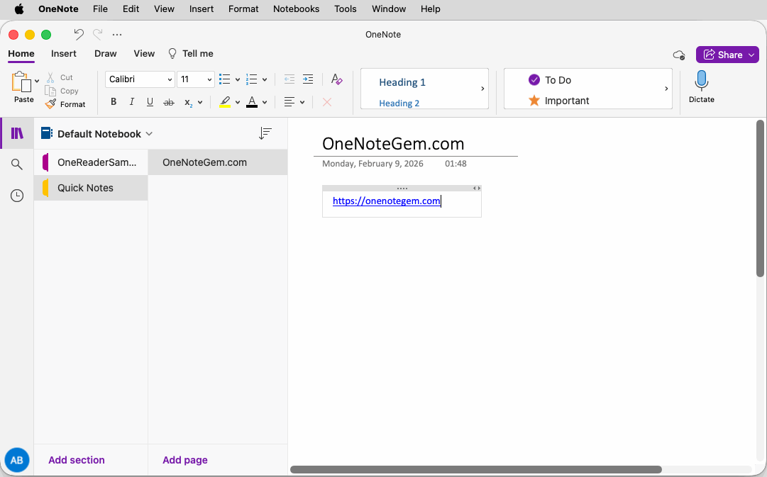 Use OneNote on macOS to view the Default Notebook.There are already 2 sections inside.